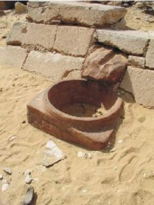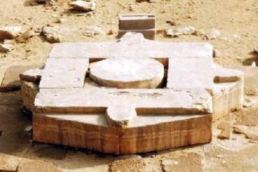 Ale jsou i jiné možnosti využití křemenného krystalu ve vztahu k vodě. V oblasti zvané Abu Garab se nacházejí ruiny Slunečního chrámu. Na rozlehlé planině plné kamenné suti se nachází zvláštní předmět – monoblok z bíle alabastrového kalcitu, jak se uvádí na internetu v některých článcích. Jde o omyl. Jednalo se monoblok vyrobený z jednoho kusu křemence, který je ještě navíc umístěn na troskách těžkých kamenných desek, které zjevně tvořily podlahu původní stavby. Předmět je velký odhadem 7 x 7 metrů a vysoký něco přes metr. Uprostřed je dvoumetrový kruh jakoby vyřezaný laserem, naprosto hladký. Kámen je opracován způsobem, který dle Christophera Dunna vylučuje ruční práci. Na mnohých místech jsou dodnes patrné zářezy způsobené přesahem obráběcího stroje, který občas ujel z požadované linie. Dr. Abd’El Hakim Awayan tvrdí, že se pod kamenem nachází 60m hluboká šachta pod hladinou moře, která sloužila jako nádrž na vodu a dosud v ní pořád teče voda. Kámen pak sloužil jako podstavec pro mohutný krystal, který spolu tekoucí vodou vytvářel zdroj energie.